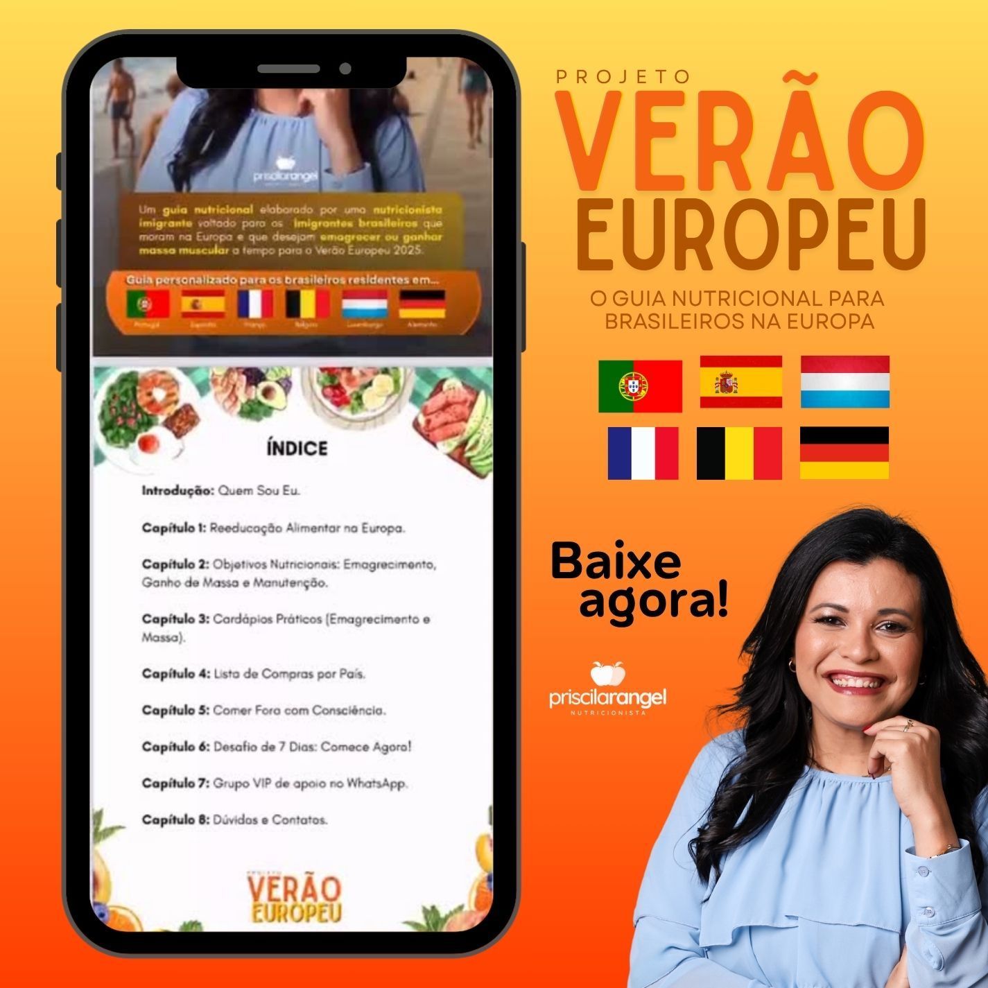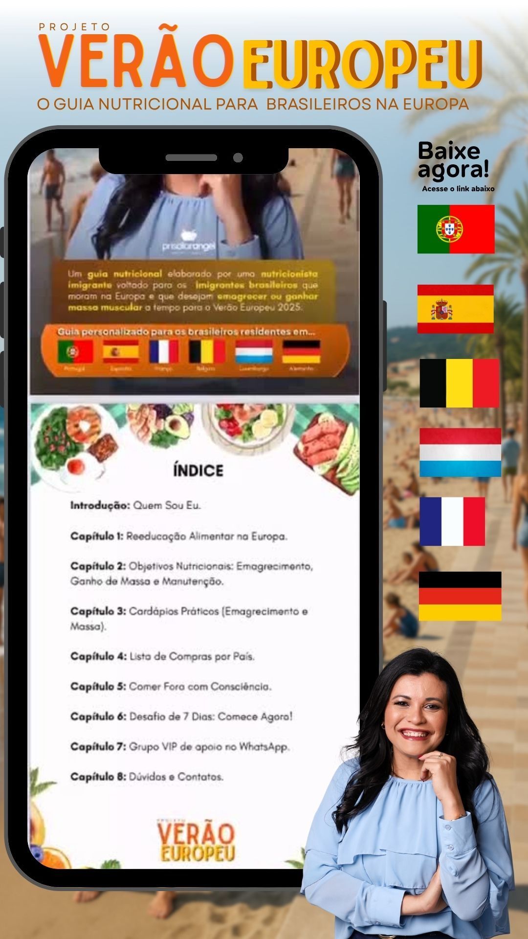 Um guia completo, prático e 100% adaptado à realidade de quem vive fora — criado por uma nutricionista com 14 anos de experiência e mais de 2.000 vidas transformadas!